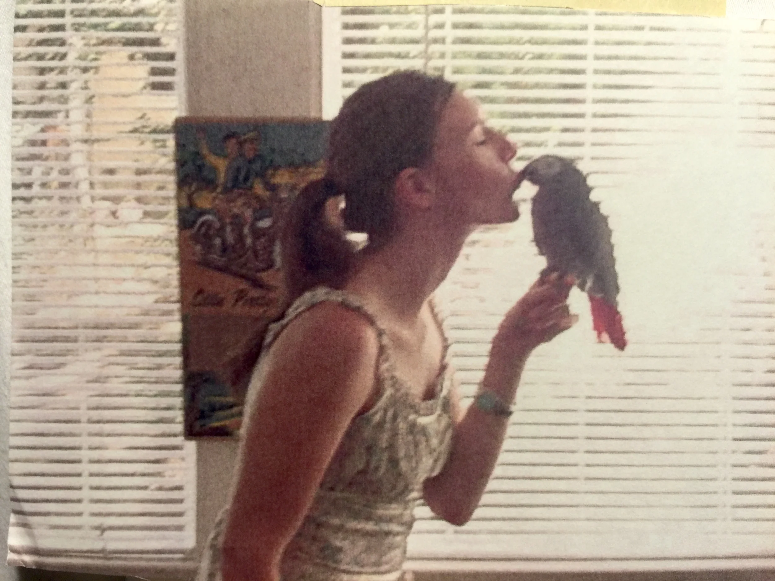 When I was 20 I purchased a baby African Grey parrot. I remember being so scared to open the cardboard bird cage, fearful he'd come out with a vengeance. When I gained the courage, he popped up and I was able to give him a kiss on the beak.