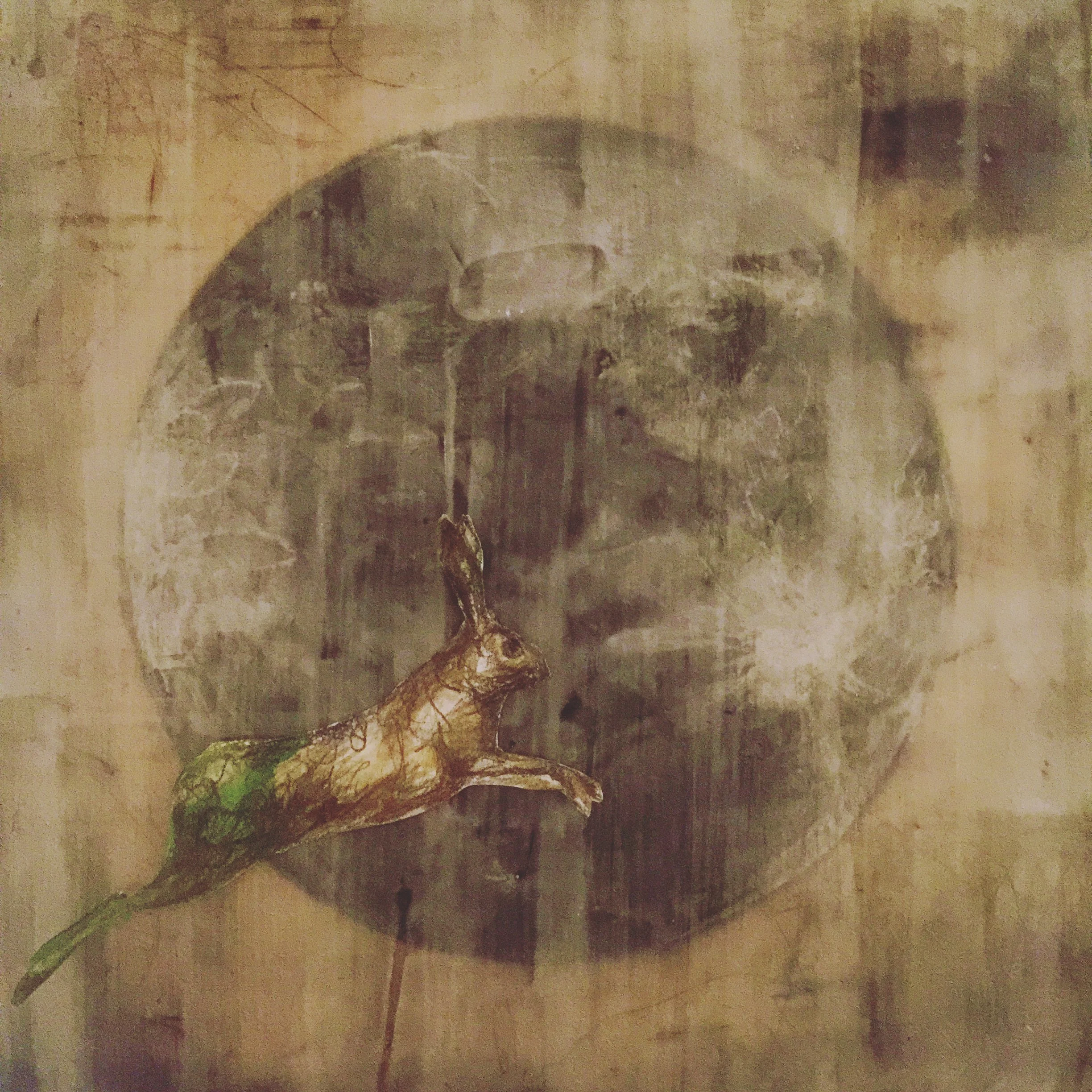 I think about the hare’s connection to a giant celestial body. I picture a fluffy bunny floating in outer space.